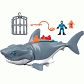 - Duży zabawkowy rekin z figurką płetwonurka, klatką i akcesoriami