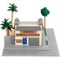 Jada Fast&Furious Szybcy i Wściekli Kawiarnia Toretto — miniaturowa dioraama z 2 filmowymi nano samochodami (Mitsubishi Eclipse i Ford F-150 SVT Lightning ), garażem i przydomowym ogródkiem i fragmentem drogi.