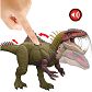 Atak, ryk i totalna agresja! Specjalne pokrętło akcji uruchamia realistyczne sekwencje ruchów: przekręć w przód, aby aktywować potężne uderzenie głową w dół z kłapiącymi szczękami i groźnym warczeniem. Przekręć w tył, a dinozaur odchyli głowę, wyda donośny ryk i wysunie kolce ogona w trybie „ewolucja do walki”, gotowe zadać dodatkowe obrażenia!