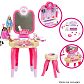 - Oprócz toaletki z lustrem i taboretem, do wyposażenia należą takie przybory, jak pilnik do paznokci, atrapy lakieru do paznokci, szczotka i klipsy do włosów