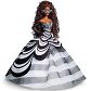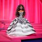 Ta oszałamiająca lalka upamiętnia 65. rocznicę powstania Barbie w olśniewającej czarno-białej sukni z szafirowymi dodatkami. Jej olśniewający wygląd nawiązuje do oryginalnej lalki Barbie z 1959 roku z pasiastym wzorem, niebieskimi okularami przeciwsłonecznymi, bocznym spojrzeniem, czerwonymi ustami i kucykiem.