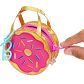 - Okrągła torba ma wzór pączka. Lalka Barbie będzie tak słodko stylowa dzięki swojej dużej torbie i cukierkowemu wyglądowi!