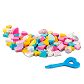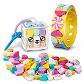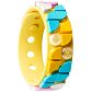 - Mnóstwo cukierkowych wzorków — dzieci rozwiną kreatywność, projektując zestaw z regulowaną bransoletką w pastelowym żółtym kolorze, zawieszką w białym kolorze i mnóstwem płytek w żywych barwach