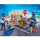 Gdy przestępca próbuje uciec, policja Playmobil zabezpiecza drogę i kontroluje pojazdy. Towarzyszy im pies policyjny, który dzięki swojemu węchowi stanowi istotne wsparcie w pościgu za przestępcami. Jeśli przestępca przejedzie samochodem, zostanie natychmiast złapany dzięki barierom i kolczatce.