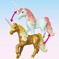 Pozwól się oczarować światu fantazyjnych jednorożców! Dziś parę wróżek odwiedza złoty jednorożec w ich urokliwej chatce. Obie wróżki opiekują się swoim nowym gościem na zewnątrz w otwartej stajni wraz ze swoimi małymi pomocnikami Joylingen. Po dniu pełnym wrażeń złoty jednorożec odpoczywa, a wróżki wtulają się w swoje przytulne łóżka.
