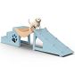 W górę, w dół, w tył i w przód - plac zabaw dla szczeniąt nie pozwala im odpocząć. Dwa szczęśliwe szczeniaki zbiegają po rampie, szaleją wokół budy i natychmiast wskakują po schodkach na dach budy po drugiej stronie. I tak w kółko, aż wyczerpią siły. Następnie wchodzą do przytulnej budy. Tutaj mogą się przespać lub wzmocnić wodą z miski i pyszną psią kością. Być może po przerwie dach chaty zostanie przekształcony w huśtawkę? Potem zabawa zaczyna się od nowa. Są niestrudzone. To miejsce w sam raz dla nich!