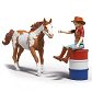 Zestaw Schleich z Hannah i koniem rasy Paint Horse przenosi w świat westernowych zawodów i emocjonujących wyścigów Barrel Racing. Figurki przedstawiają dziewczynkę w kapeluszu kowbojskim oraz jej wiernego wałacha w stylowym, westernowym siodle. Całość została wykonana z dbałością o detale, dzięki czemu zestaw wygląda realistycznie i zachęca do kreatywnej zabawy.