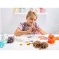 W zestawie znajdziesz pięć włóczek, narzędzia niezbędne do zrobienia maskotek oraz dekoracyjne dodatki. Dzięki pięciu ładnym kolorom włóczki wykonasz rybkę, jednorożca, kotka, niedźwiadka, papugę i myszkę. Przez proces tworzenia przeprowadzi cię instrukcja w języku polskim z obrazkowymi wskazówkami. Najbardziej pomocnym, praktycznym narzędziem jest akcesorium do robienia pomponów, ale w pakiecie znajdziesz też tubkę kleju, plastikową igłę i gotowe wycinki z filcu. Wszystko się przyda! Ale sam pomponik nie przedstawia jeszcze zwierzaczka - trzeba go ozdobić. Do użytku masz samoprzylepne oczy, wciskane oczy (z karbowanym trzonkiem), zawieszkę gwiazdkę i przylepiany klejnocik. Sporo tego!